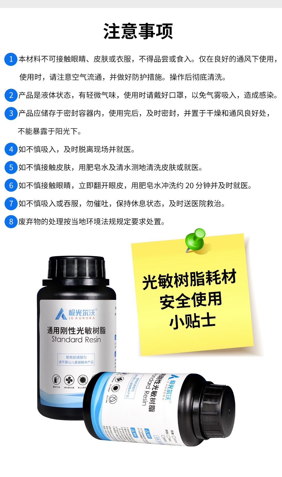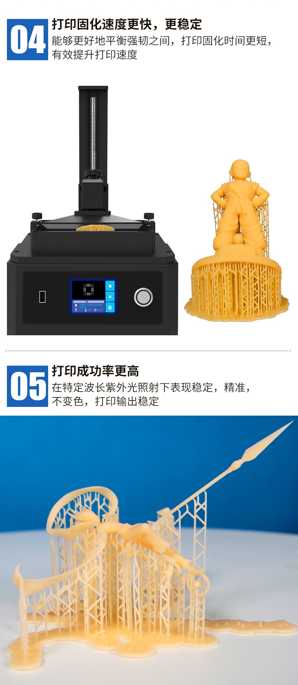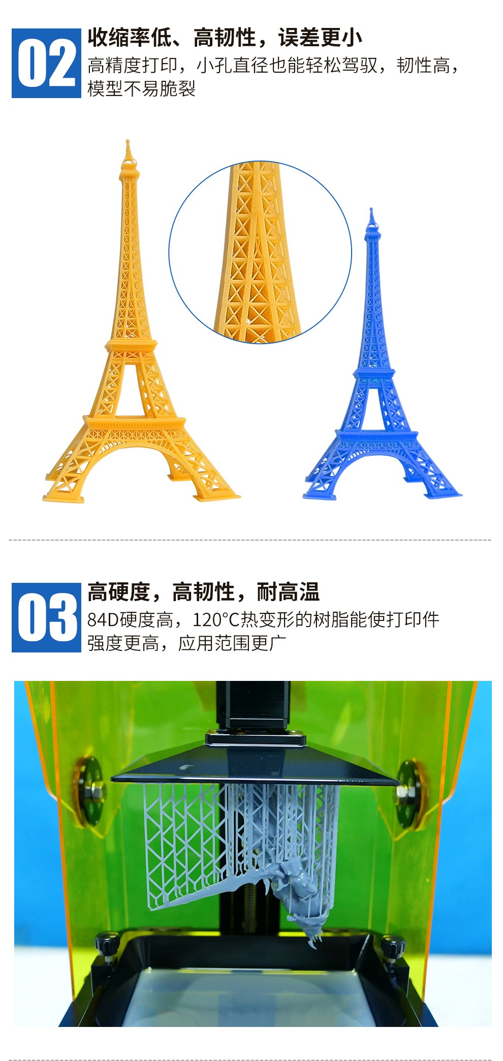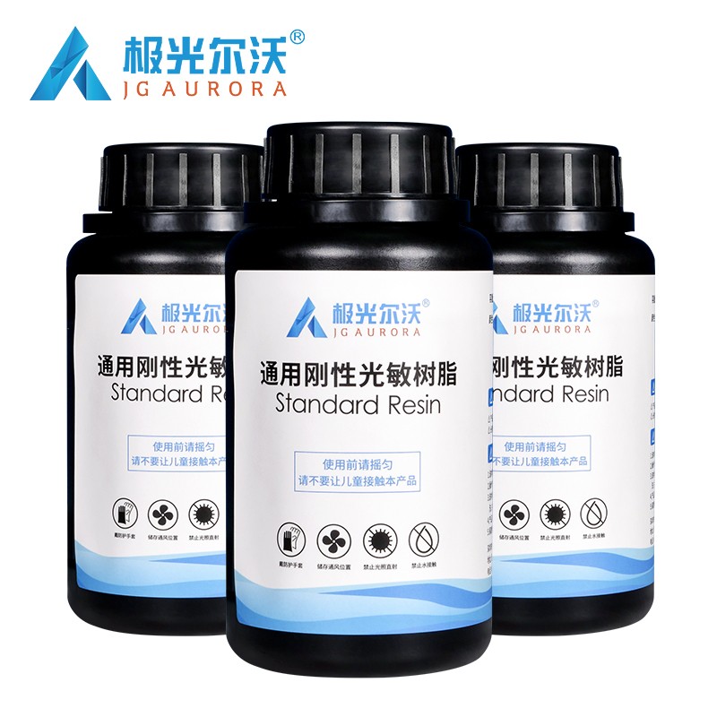 通用剛性樹脂耗材,高精細度表面光滑細膩,收縮率低、高韌性,誤差更小,高硬度、耐高溫,固化速度更快更穩定,兼容市面上的LCD 3D打印機